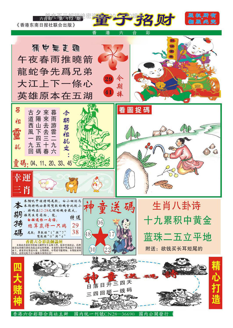 117期:心水报正版/港彩商报精简/东方心经/特码生肖诗/四字肖诗